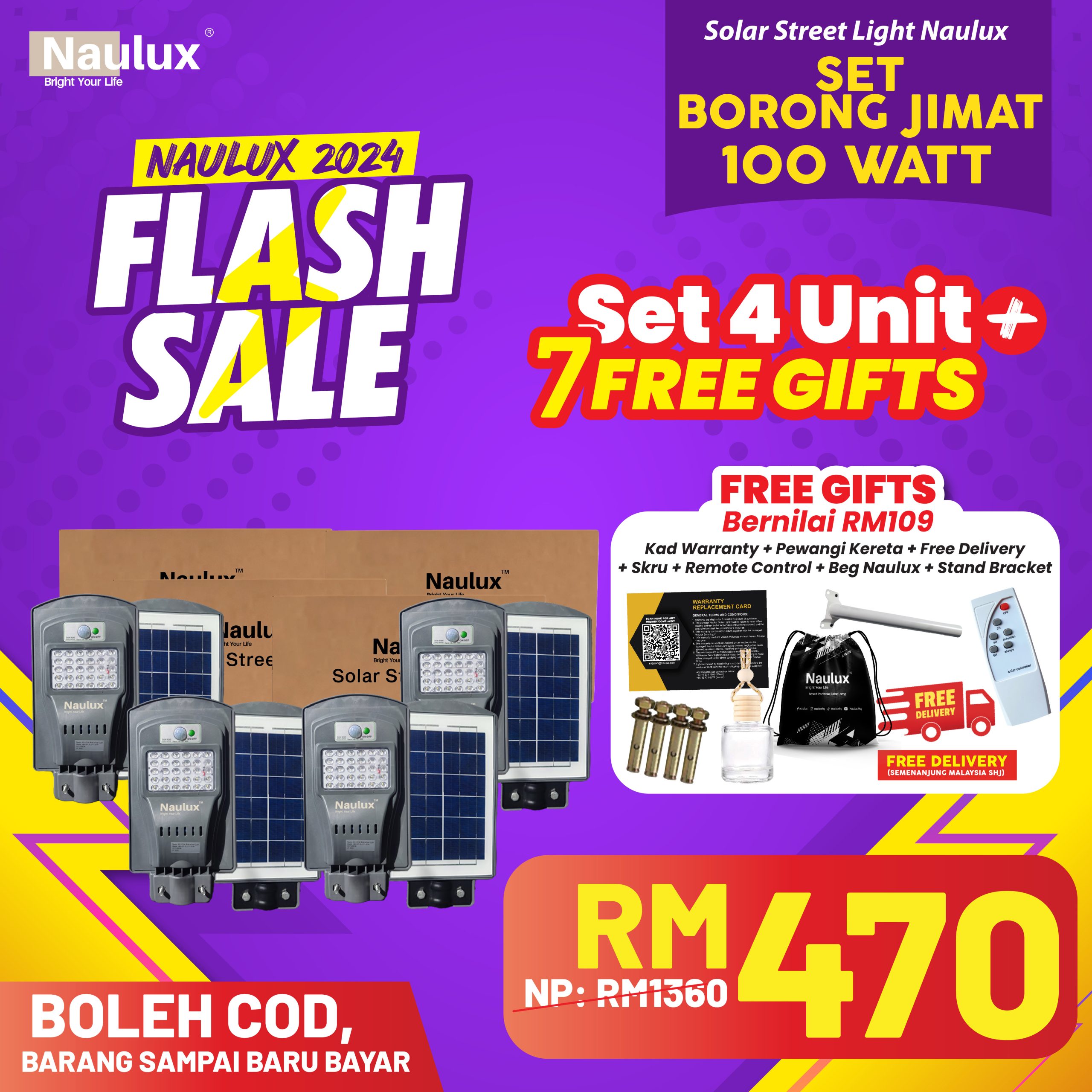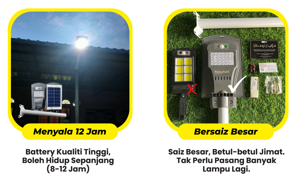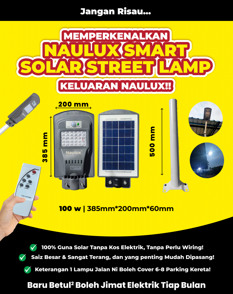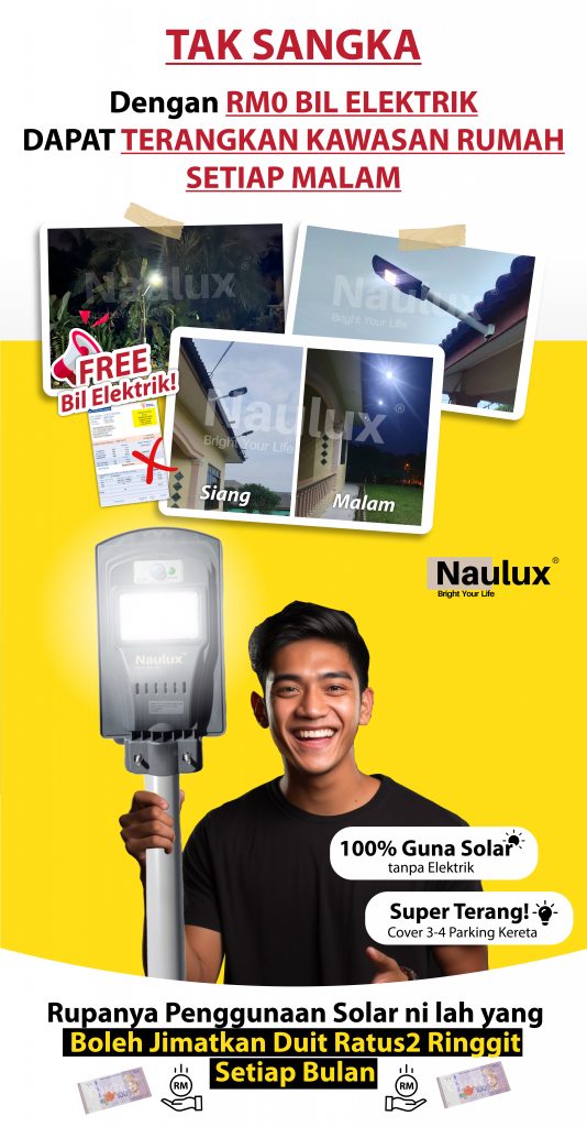 TAK PERLU RISAU LAMPU SOLAR NAULUX NI ADA 100% JAMINAN