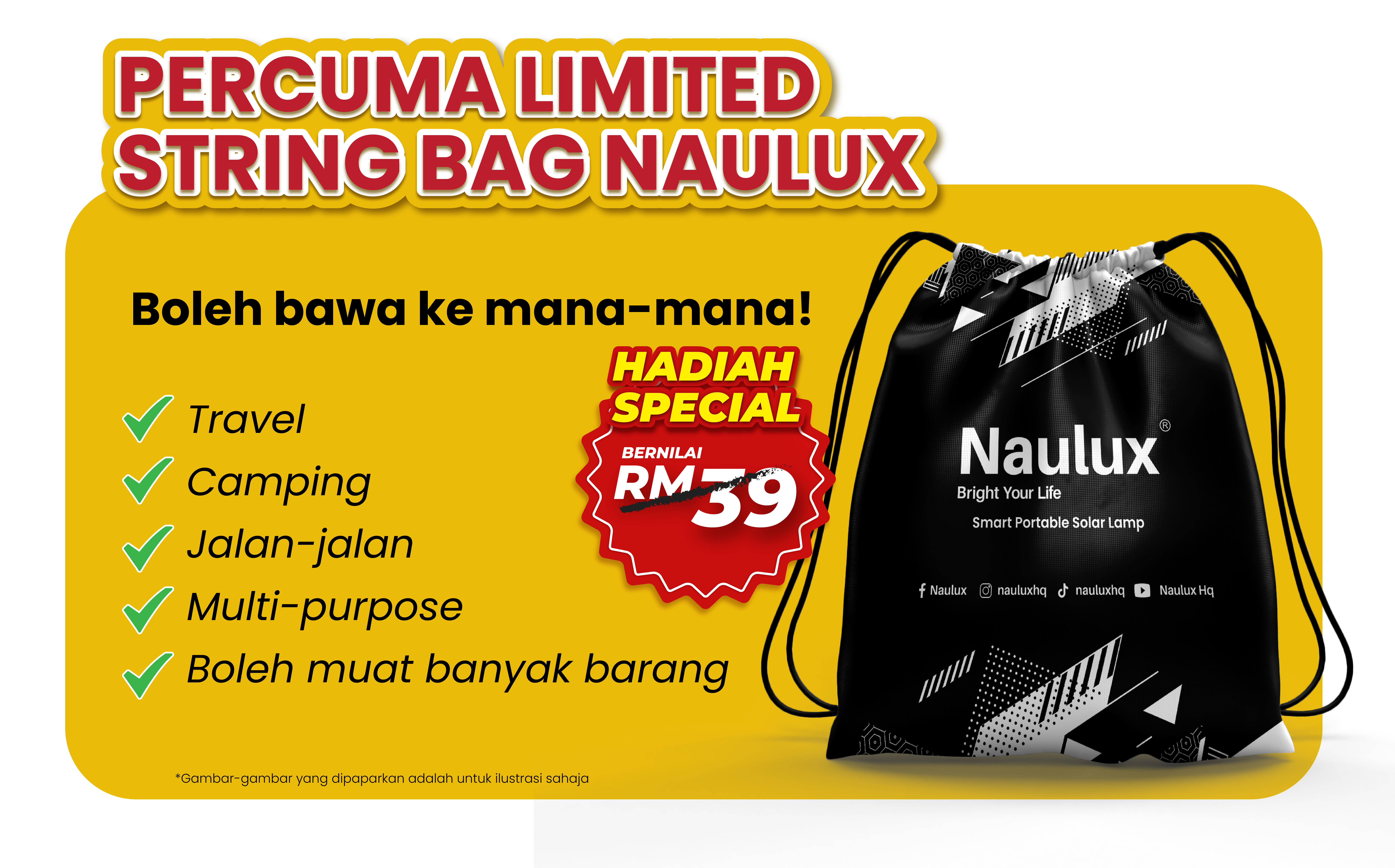 Anda order sekarang "SET BIJAK @ BORONG JIMAT", saya berikan lagi hadiah special Limited Beg Naulux!
